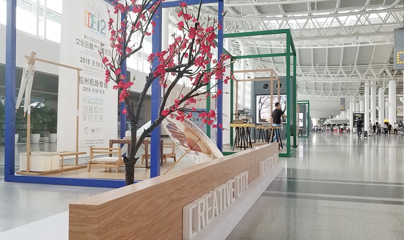 為積極配合杭州市文創產業發展,大力推進城市國際化戰略,打造文化、品質機場,2018年9月10日,航站區管理中心聯合杭州市委宣傳部、市文創辦、市會展辦在T1航站樓7號門內舉辦了"2018年杭州市文化博覽會"杭州蕭山國際機場分會場啟動儀式,儀式上表演了精彩的古箏演奏以及民族舞蹈,吸引現場旅客駐足觀看。同時機場航站樓作為此次文博會的分會場,通過現場陳列的櫥窗及柜臺向旅客展示了工藝精美、造型獨特的文創產品,從而進一步提升航站樓文化元素,為加快杭州市成為國際文化創意中心推波助瀾。