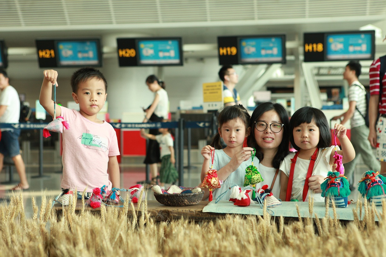 6月15日,“邂逅·浙江非遺藝術”之“邂逅浪漫空港,遇見非遺端午”活動在T3航站樓出發層舉行。在雅致的現場古琴演奏下,旅客們穿梭在翻滾涌動的金色麥浪中,休憩在蒲團上觀看非遺文化紀錄片,欣賞粽子、香囊等別致的端午文創作品。