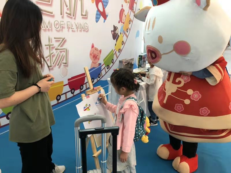 六一兒童節(jié),在T1航站樓隔離區(qū)外9號門旁組織開展了“夢想起航,童心飛揚(yáng)”兒童節(jié)文化活動?;顒蝇F(xiàn)場,“星際迷航”、“DIY彩繪飛機(jī)”等一系列航空趣味互動活動吸引了大批小朋友和家長的積極參與,可愛的“福小豬”人形玩偶與小朋友們一起做游戲互動,提前慶祝六一兒童節(jié),現(xiàn)場不時傳來孩子和家長們的歡呼聲?;顒又荚谕ㄟ^旅客互動活動,進(jìn)一步拉近機(jī)場與旅客的距離,讓旅客在旅行的起點(diǎn)感受出行的美好體驗(yàn)。