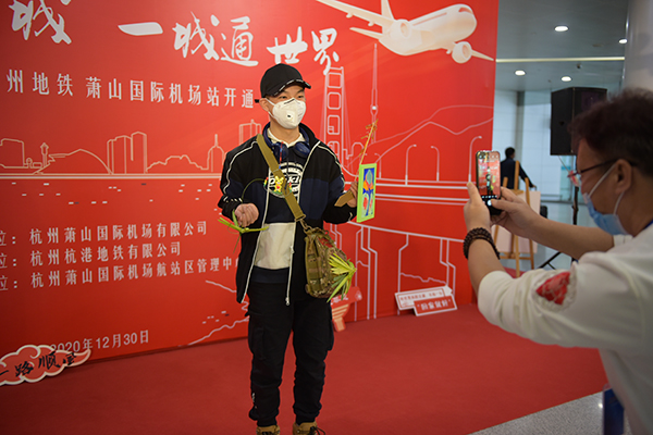 當(dāng)日,為慶祝杭州機(jī)場(chǎng)正式開(kāi)通地鐵,航站區(qū)中心在T3航站樓內(nèi)開(kāi)展“一線連全城 一城通世界”文化主題活動(dòng)?;顒?dòng)邀請(qǐng)了“糖畫”“草編”“捏面人兒”“水印畫”等四位杭州非遺傳承人到現(xiàn)場(chǎng)與旅客進(jìn)行互動(dòng),傳授制作技巧,贈(zèng)送手工藝品,讓旅客感受杭州地域文化。首位搭乘地鐵前來(lái)機(jī)場(chǎng)的旅客被邀請(qǐng)至活動(dòng)現(xiàn)場(chǎng),并獲得精美禮品。此外,活動(dòng)現(xiàn)場(chǎng)還設(shè)置了拍照打卡背景墻。(李俊杰 任嘉婷)