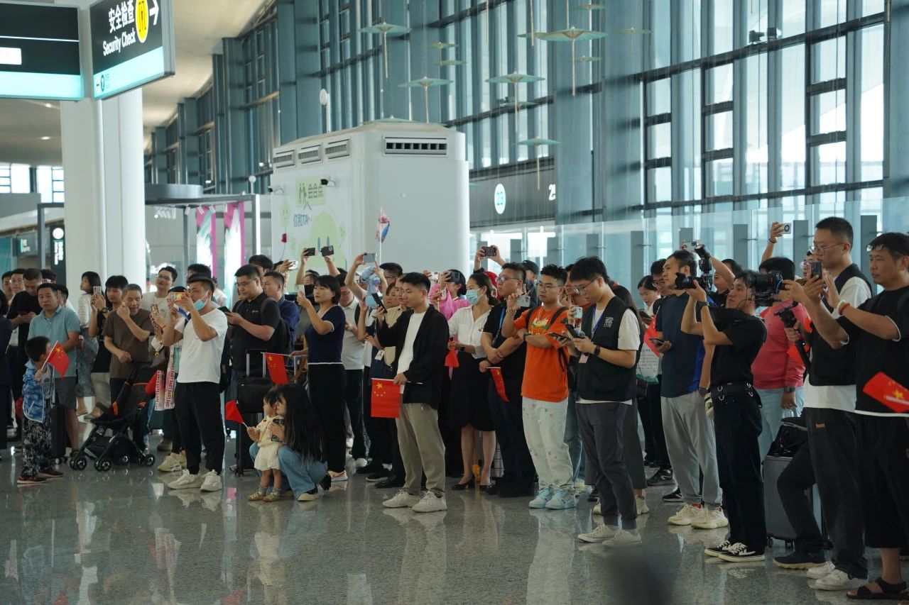 不少旅客掏出手機(jī)記錄下這動(dòng)人心弦的瞬間,來(lái)自湖北的旅客葉女士說(shuō):“國(guó)慶帶著一家人出行,沒(méi)想到在杭州機(jī)場(chǎng)看到這么精彩的演出,非常振奮人心,為我們偉大的祖國(guó)感到驕傲和自豪。”