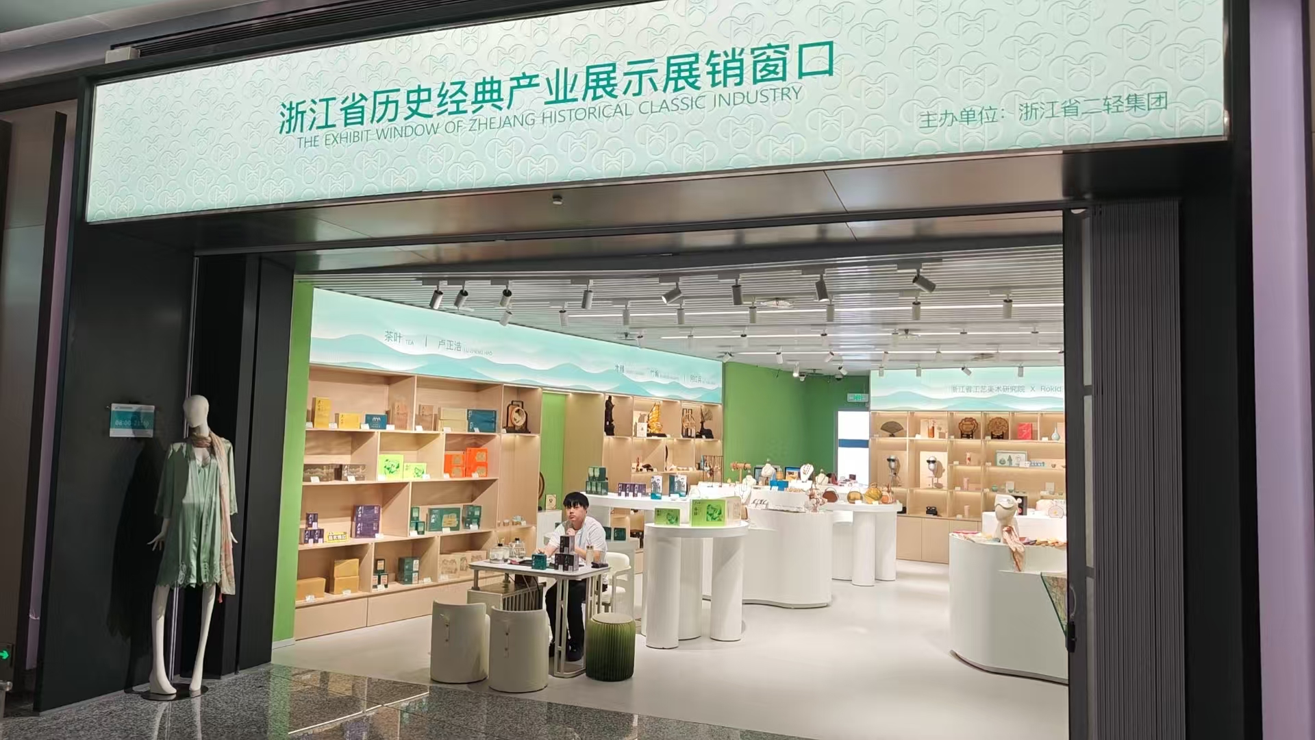 THE EXHIBIT WINDOW OF ZHEJIANG HISTORICAL CLASSIC INDUSTRYOpening hours 8:00-21:40Location 80 meters west after the Immigration Inspection (Restricted Area), T4 International DepartureContact Number 13284664455 -